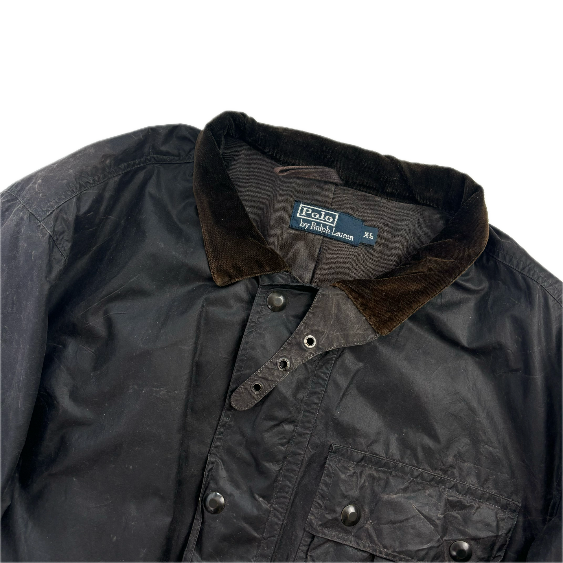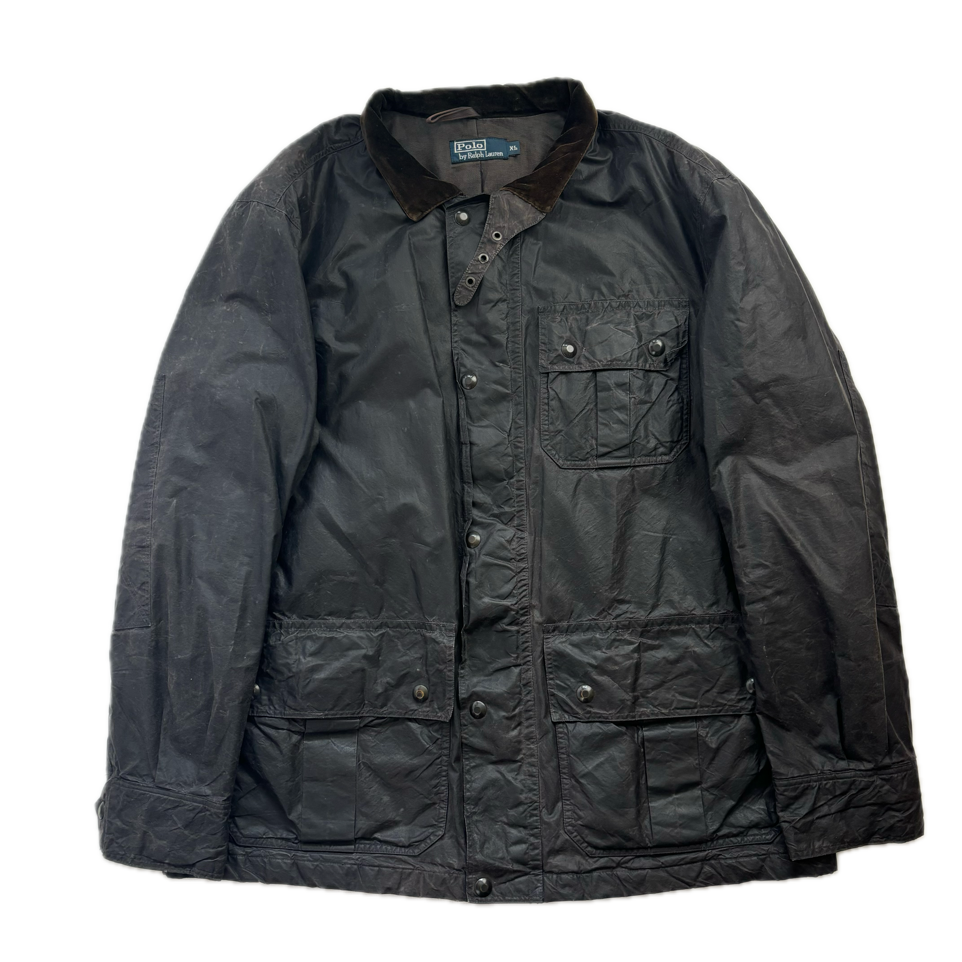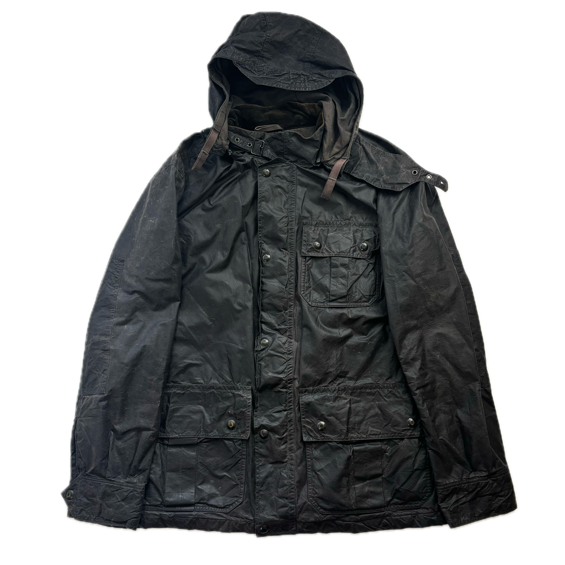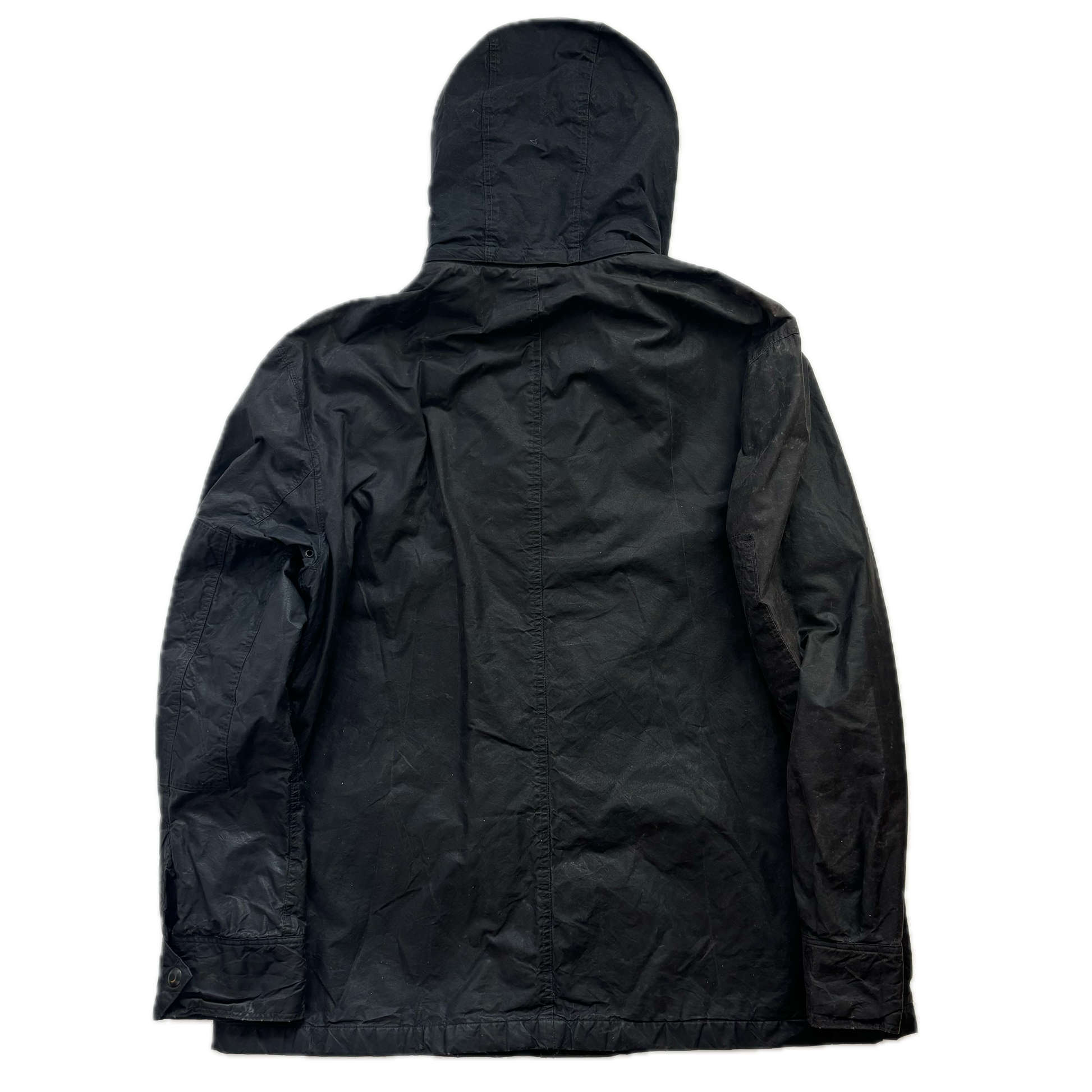 Black Oil Cloth Waxed Utility Jacket Hooded - XL