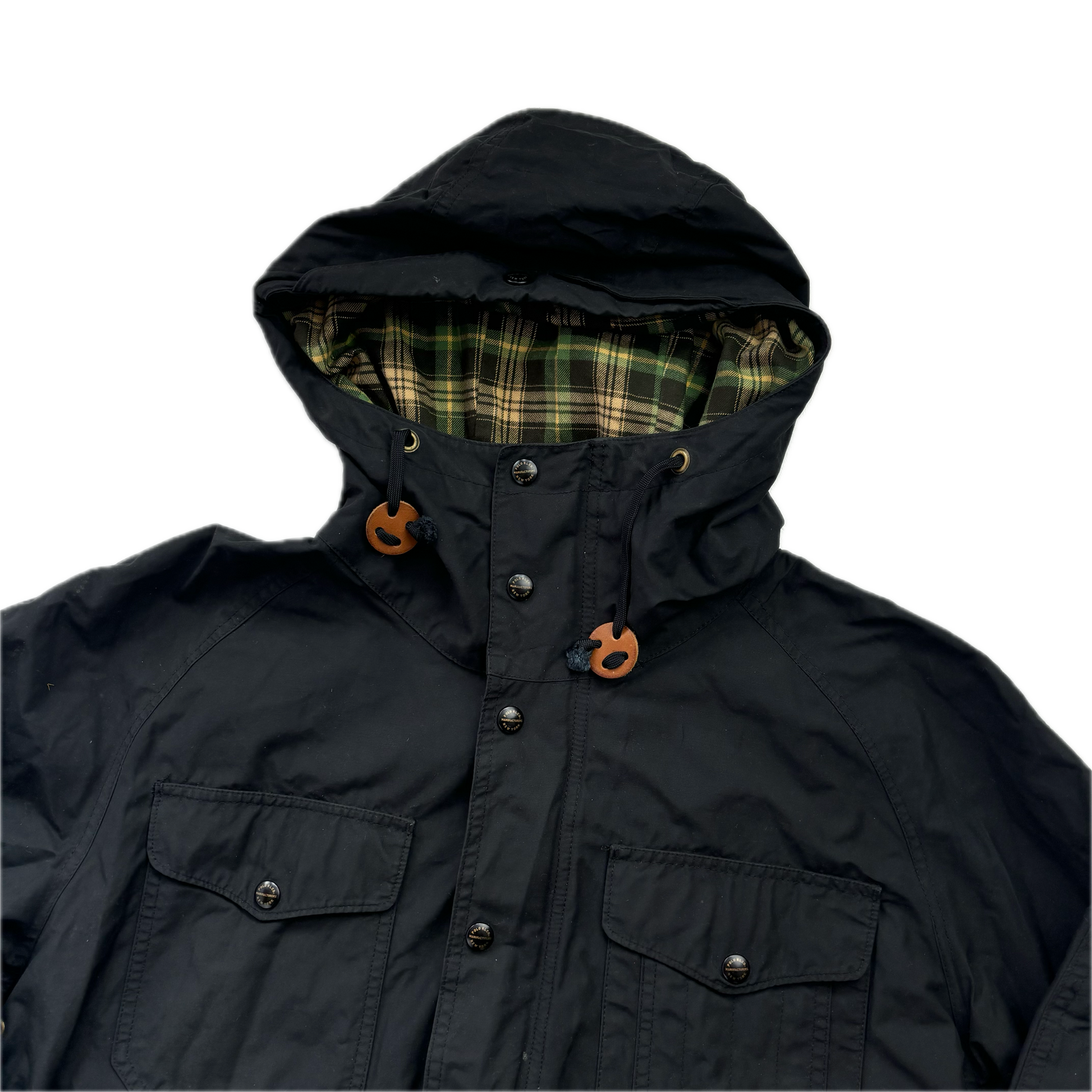 Black Rain Coat Hooded Parka - L