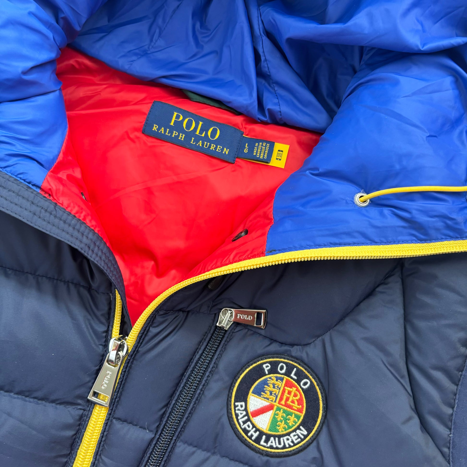 Polo Ralph Lauren Red Navy Cookie Patch Quarter Zip Puffer Vest Retro - L
