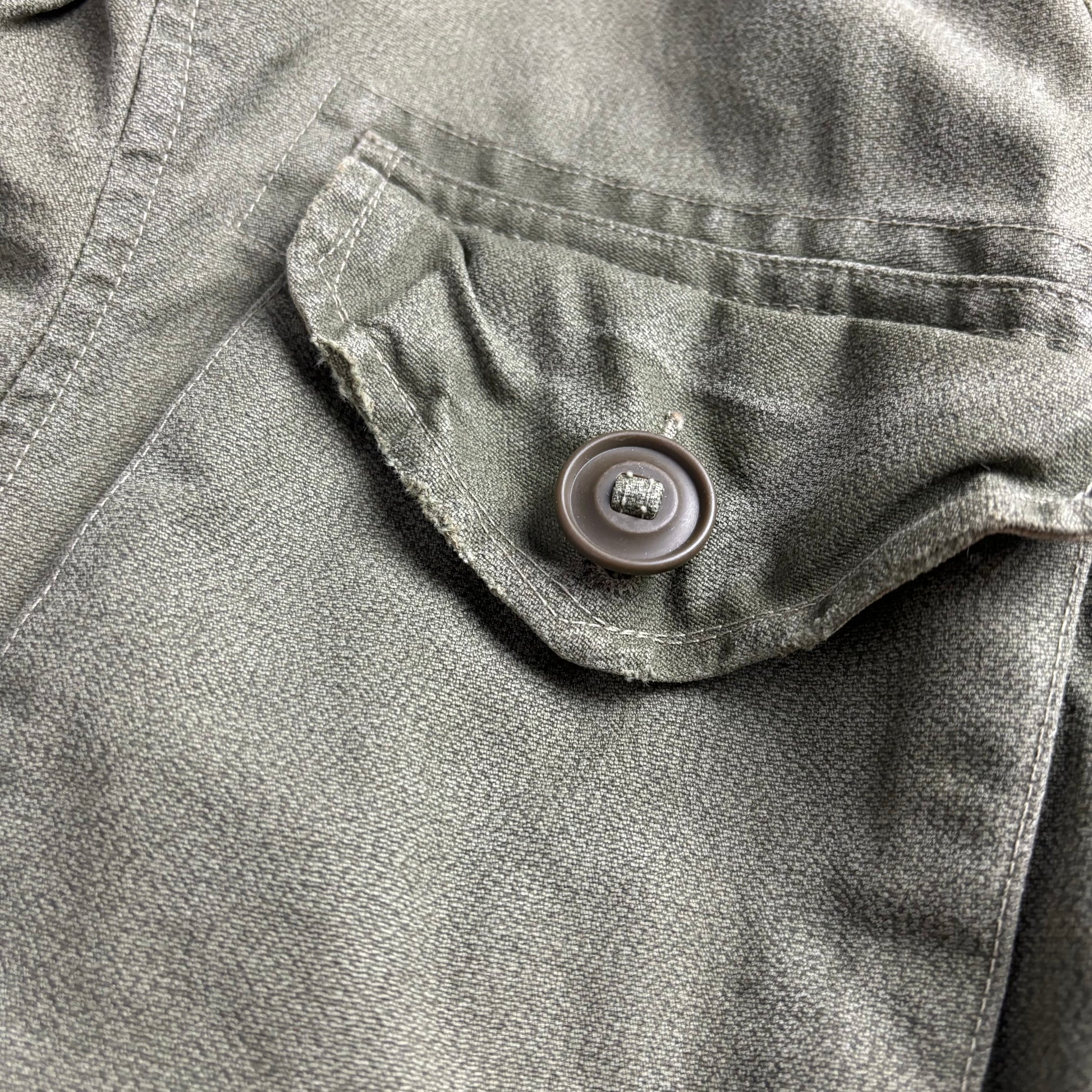 - Some wear around the collar (see pic 3) a mark to the back (pic 6) some wear around bottom hem and pocket flaps (pics 7/8) a patch on the left arm has been removed (final pic)?