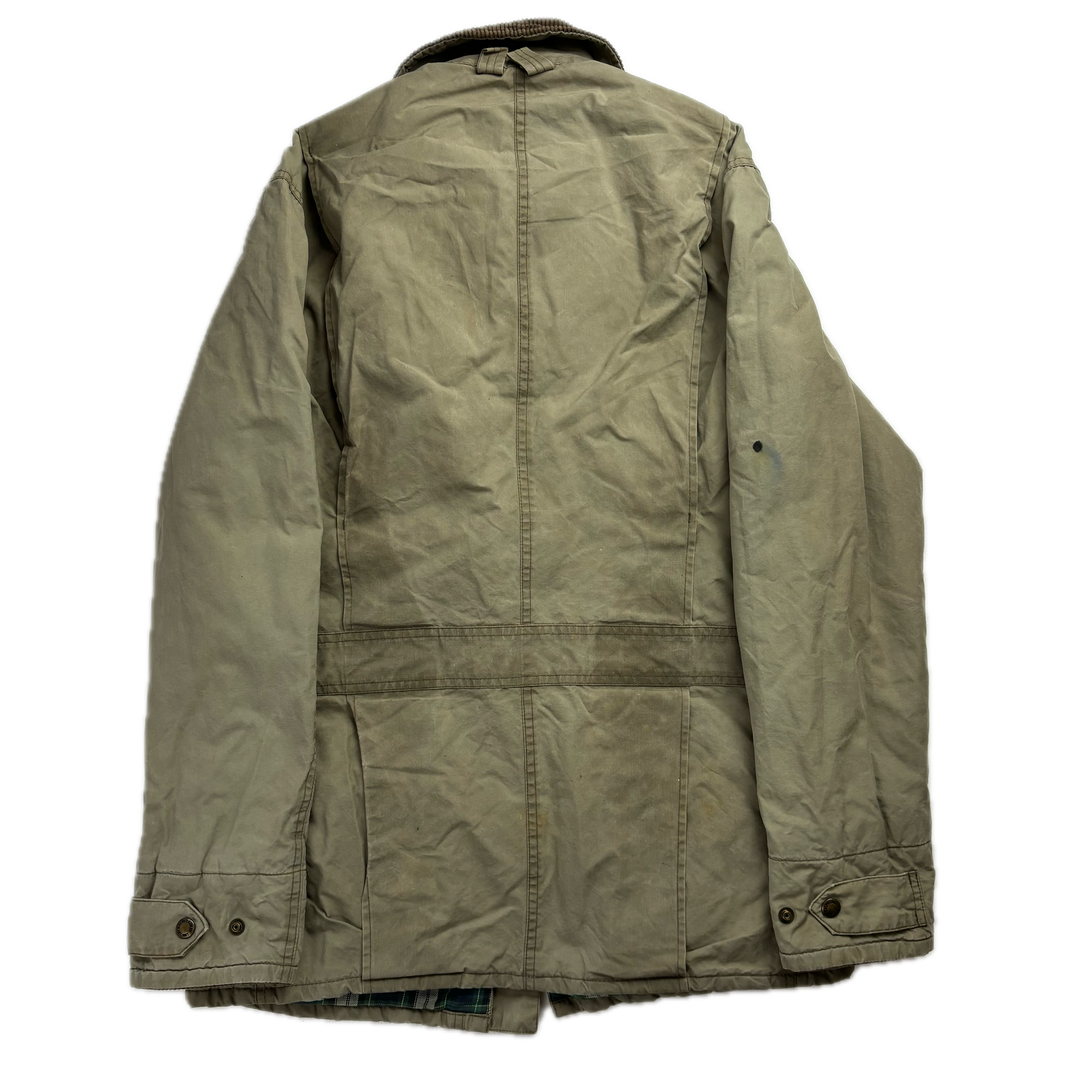 - Black ink mark on right sleeve (see pic 6) small rips near back hem of sleeves (pic 7) wear around cuffs and hems (pic 8) discolouration to the front (pic 9) marks and discolouration to the back (final pic)