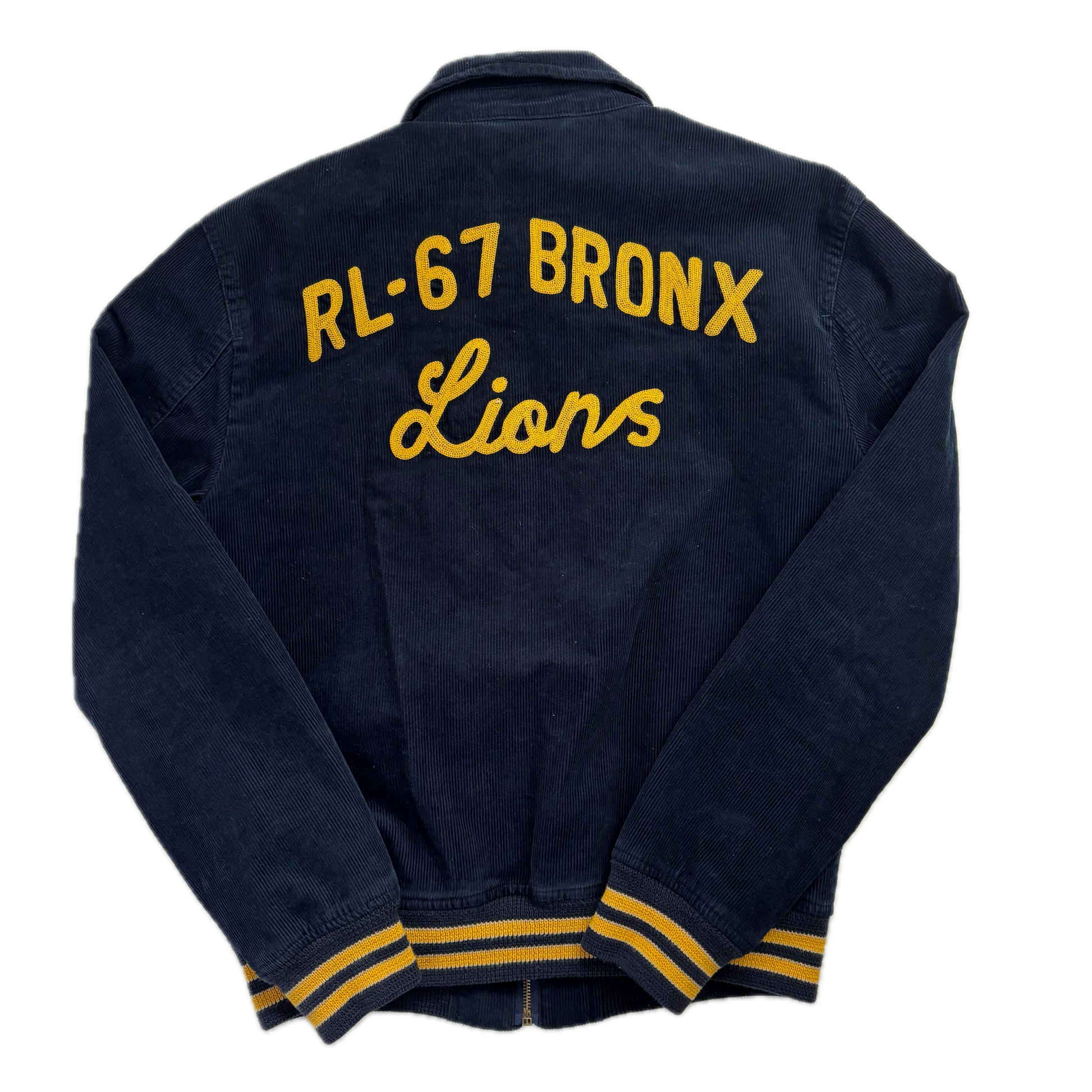 Navy Corduroy Varsity Bronx Lions Letterman Jacket - S