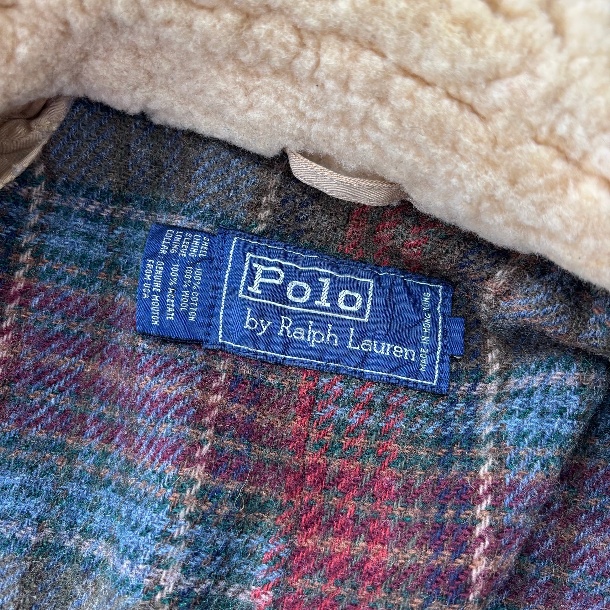 Polo Ralph Lauren Beige Double Breasted Sheepskin Collar Wool Lined Rain Mac Coat Trench - 38R