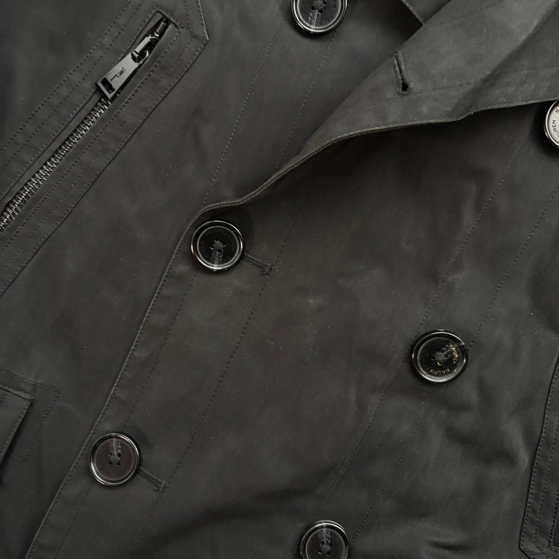 Polo Ralph Lauren Black Double Breasted Rain Mac Coat Trench - L