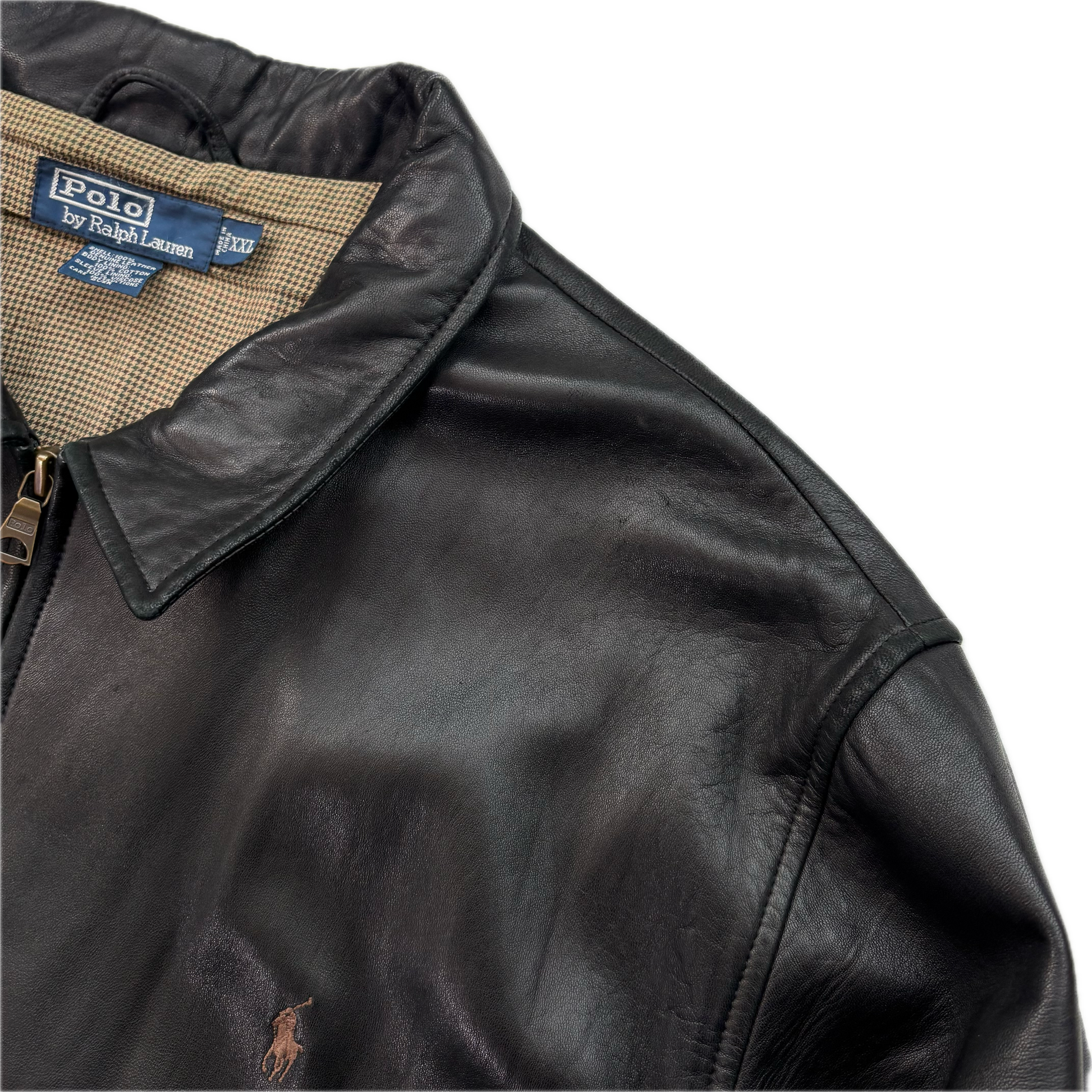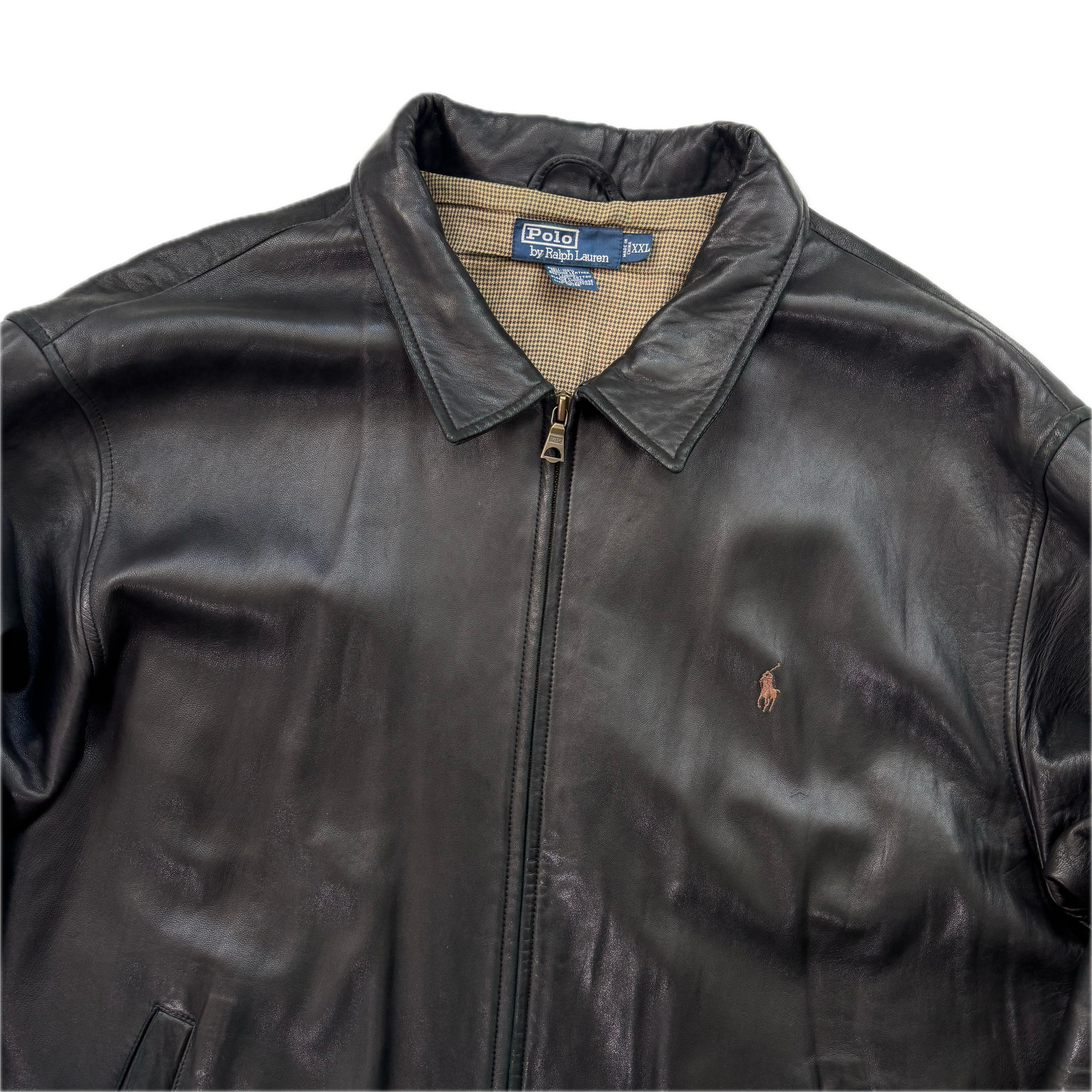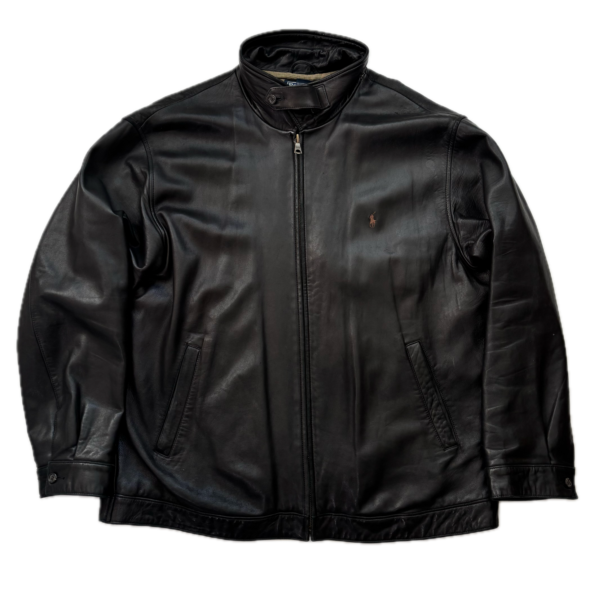Polo Ralph Lauren Black Lambskin Leather Harrington Jacket - XXL