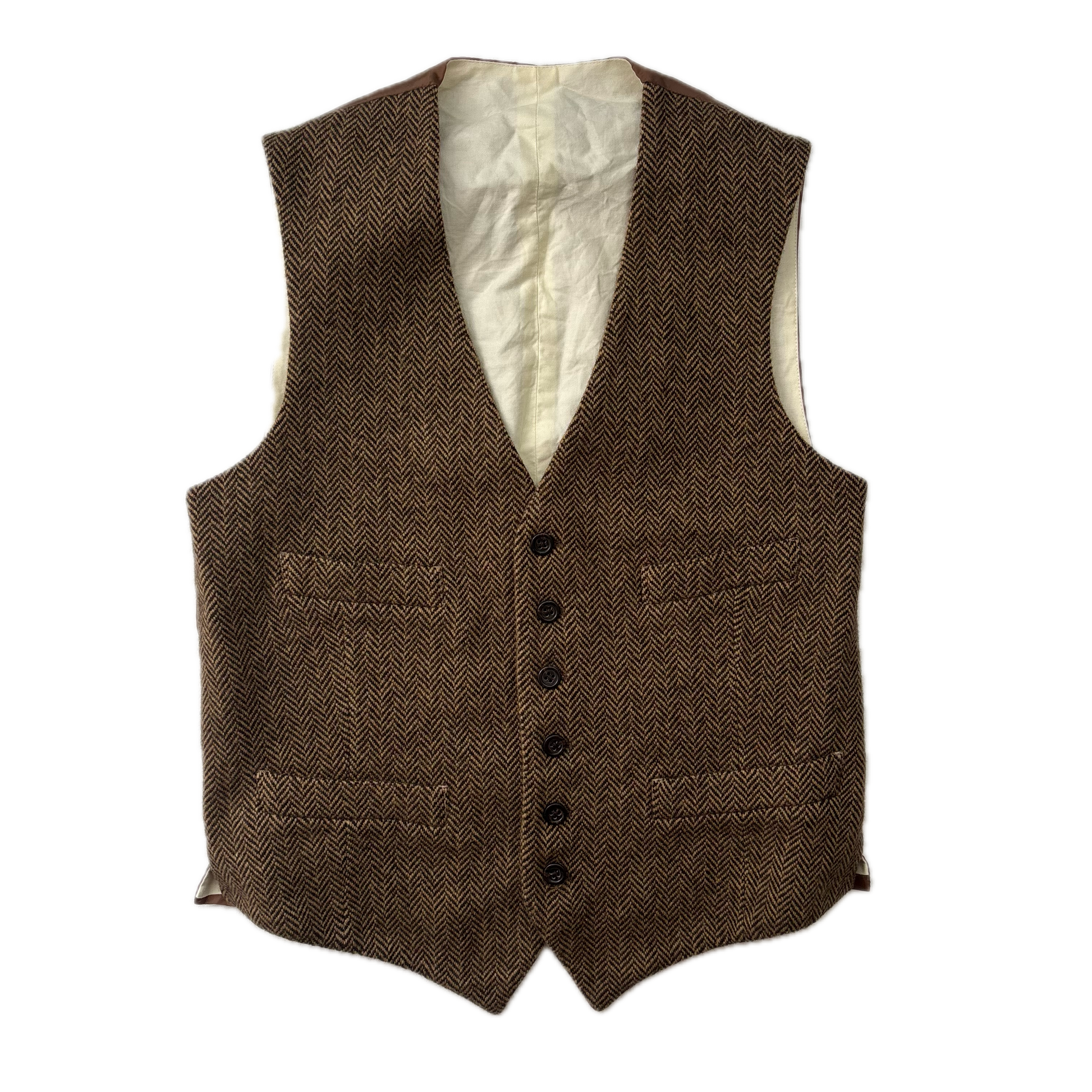 Polo Ralph Lauren Brown Herringbone Waistcoat (Wool Blend) - 38R
