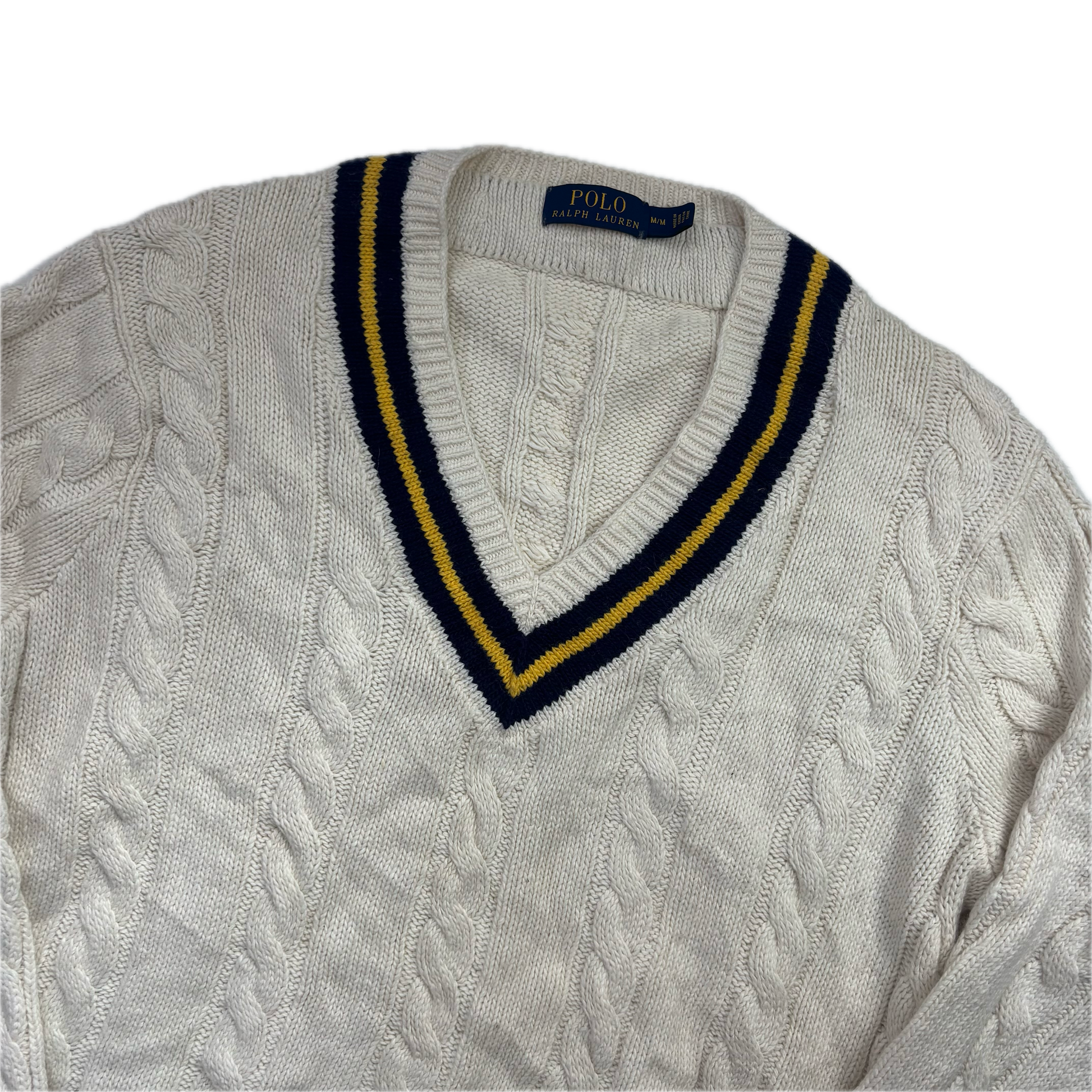Polo Ralph Lauren Cream Cricket Jumper Cableknit (Cotton Cashmere)- M