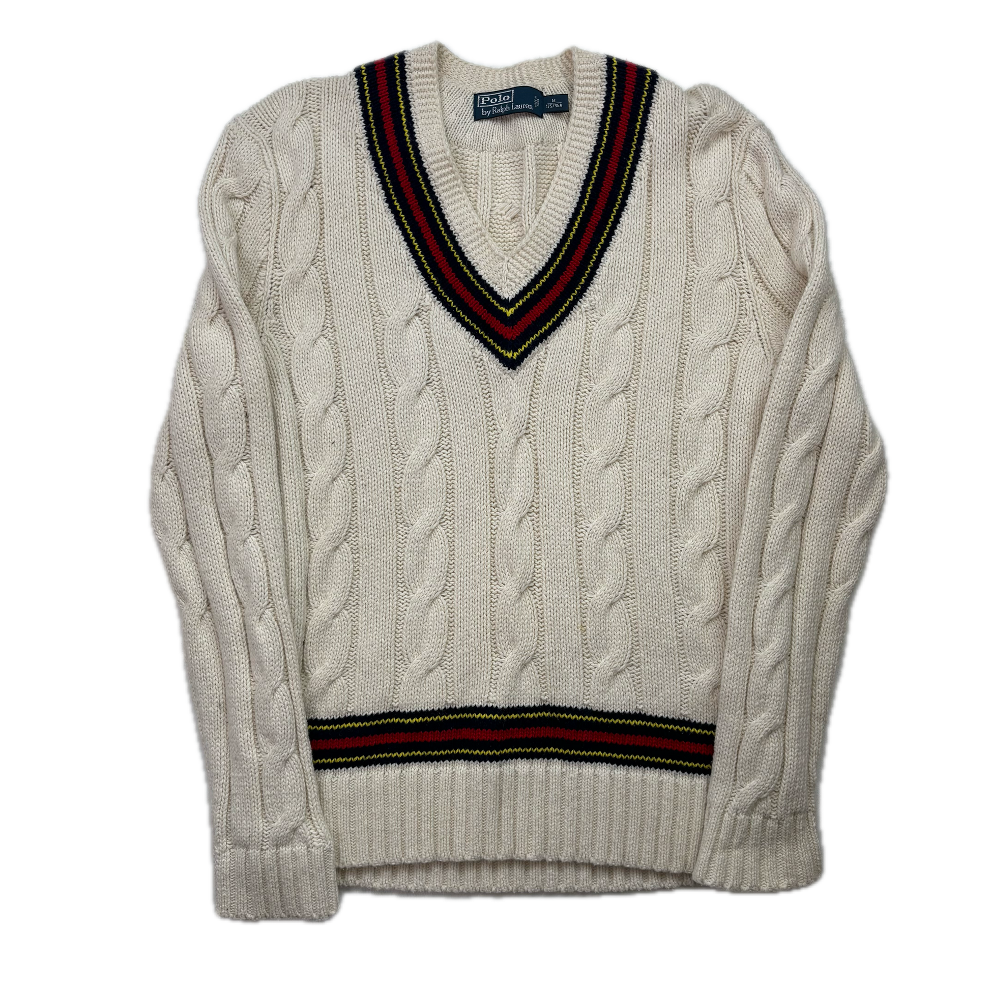 Polo Ralph Lauren Cream Cricket Navy Red Jumper Cableknit (Cotton Cashmere)- M