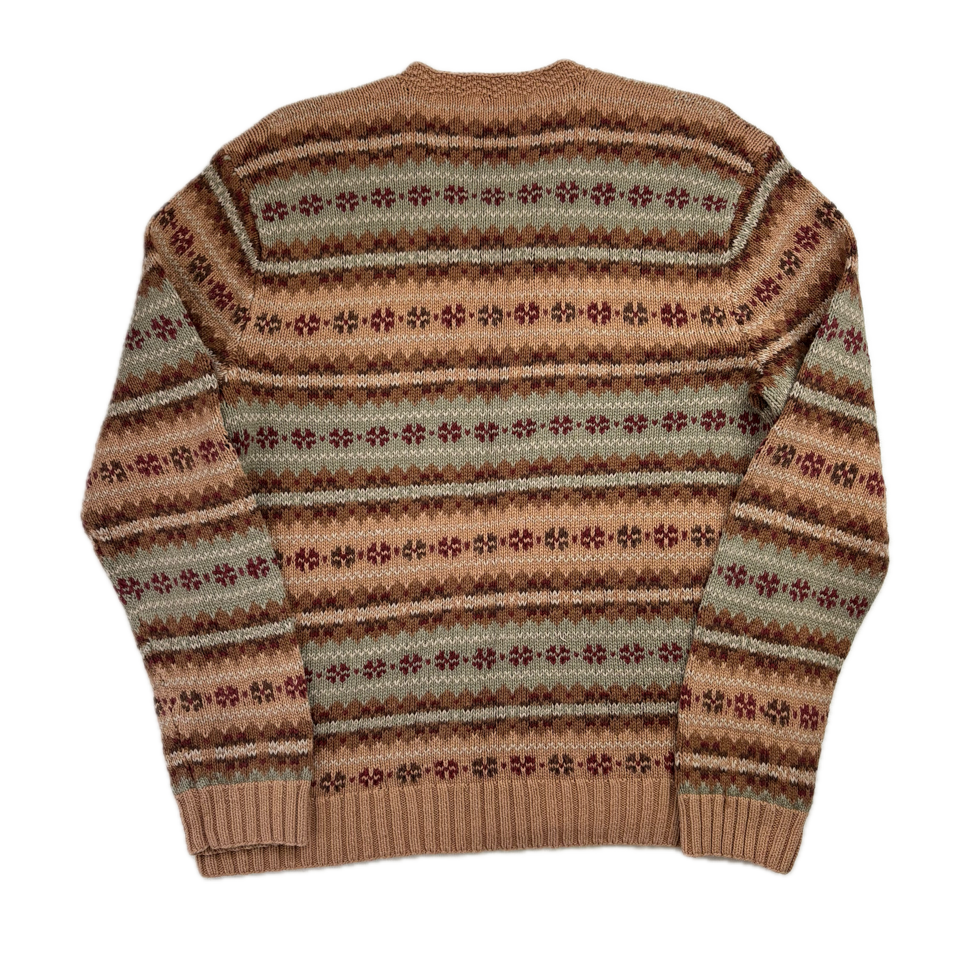 Polo Ralph Lauren Fairisle Jumper V-Neck Hand Knit Sweater (Linen Cotton) - S