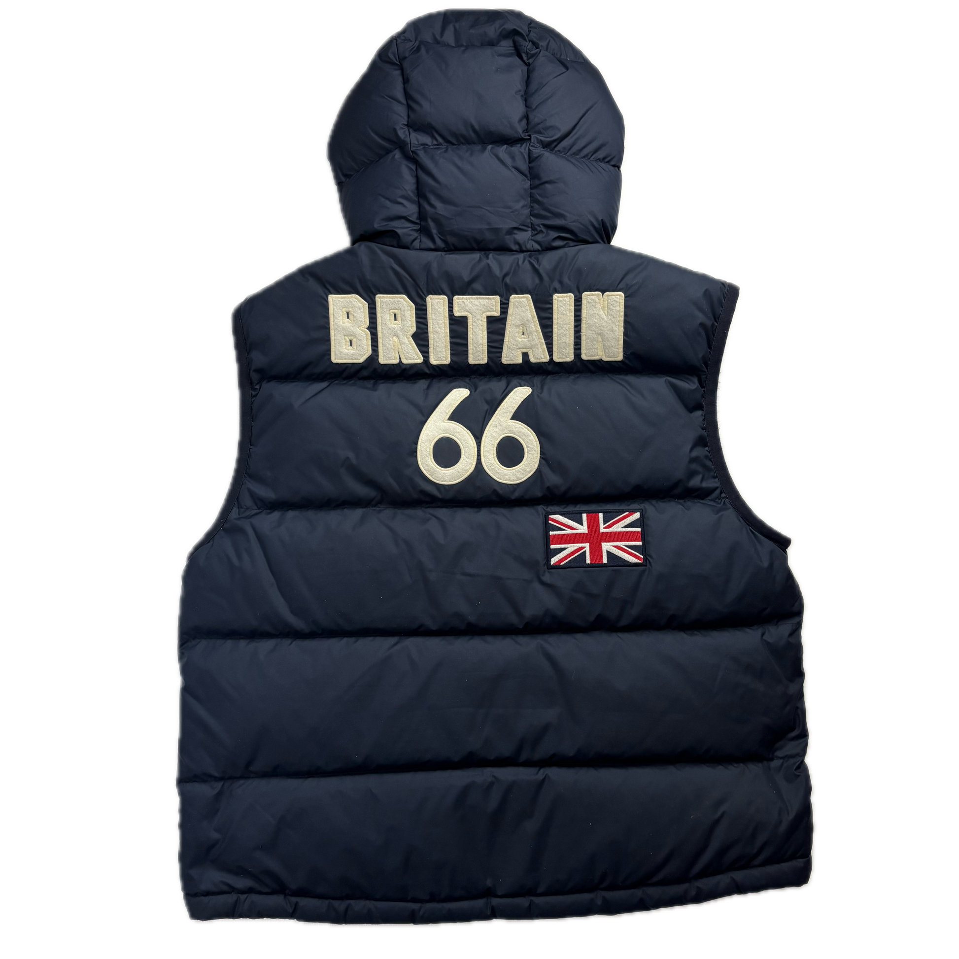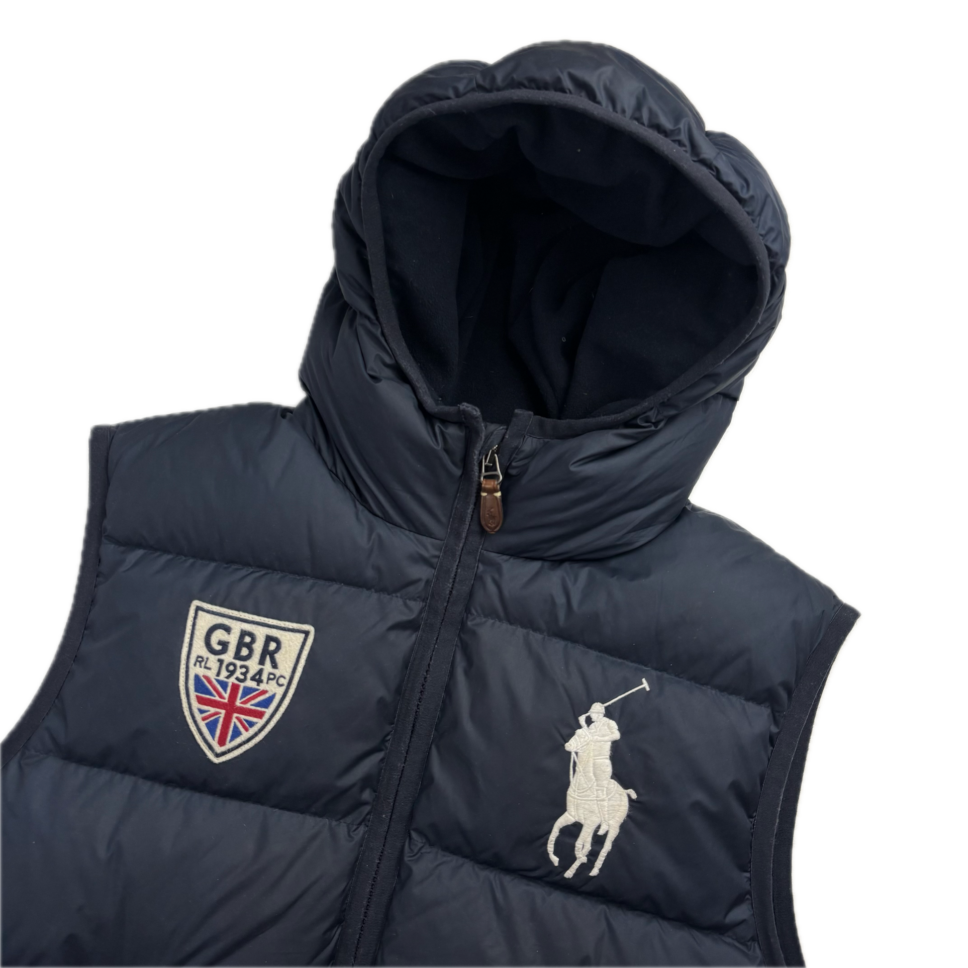 Polo Ralph Lauren Great Britain Navy Blue Hooded Body Warmer Gilet Down Vest - XL