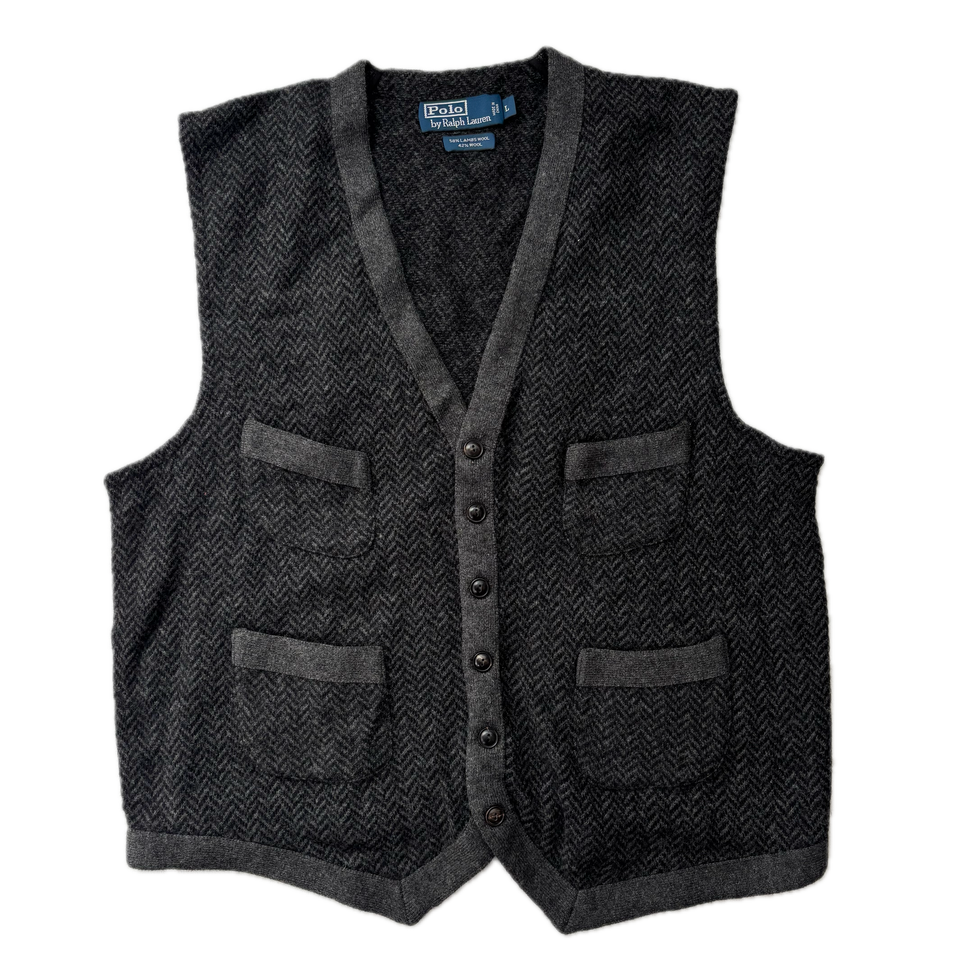 Polo Ralph Lauren Grey Tweed Herringbone Waistcoat (Wool) - L