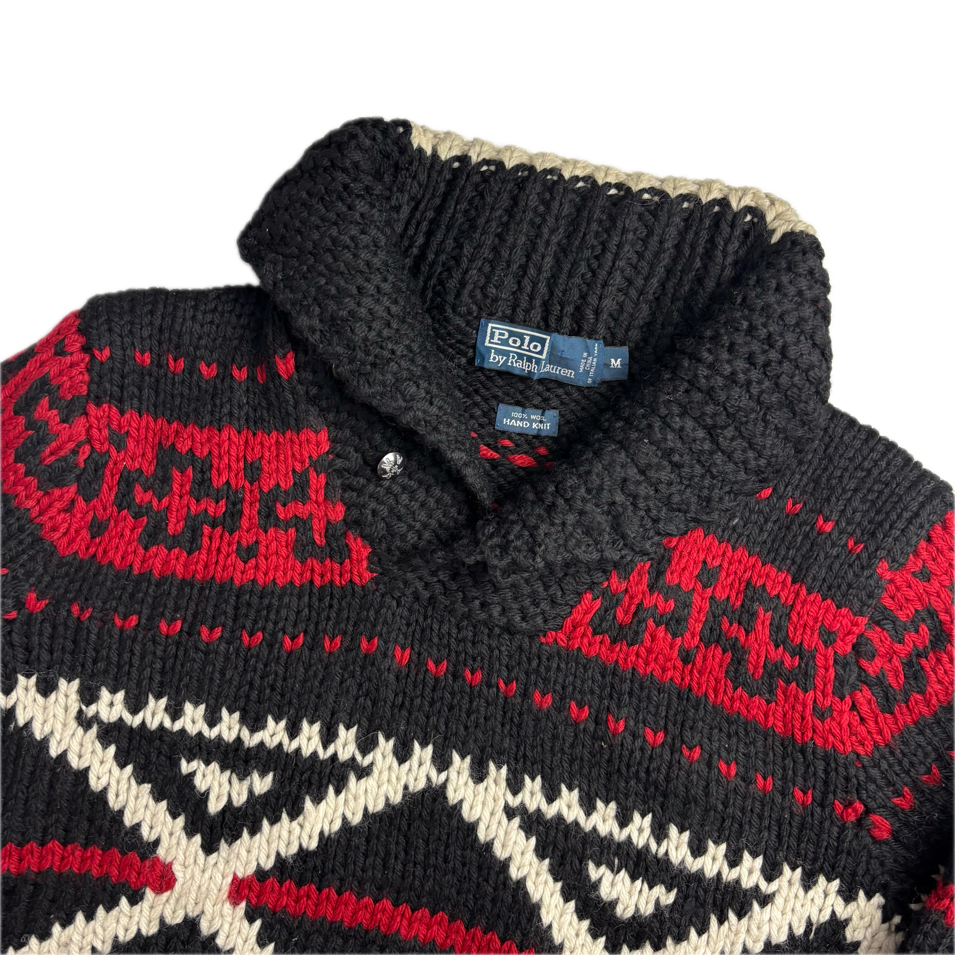 Polo Ralph Lauren Hand Knit Aztec Jumper Shawl Neck Sweater (Wool) - M