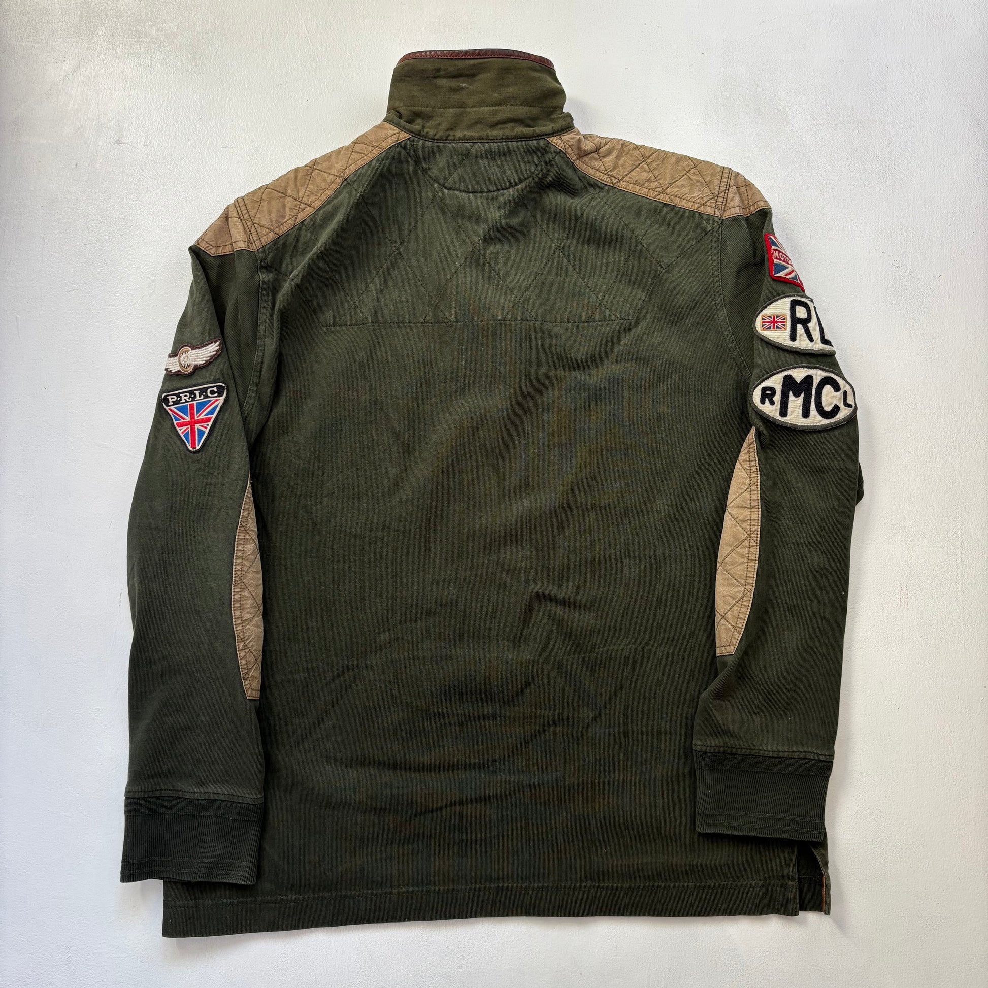 Polo Ralph Lauren Riders Association Motorcycle Polo Shirt Leather Collar - L