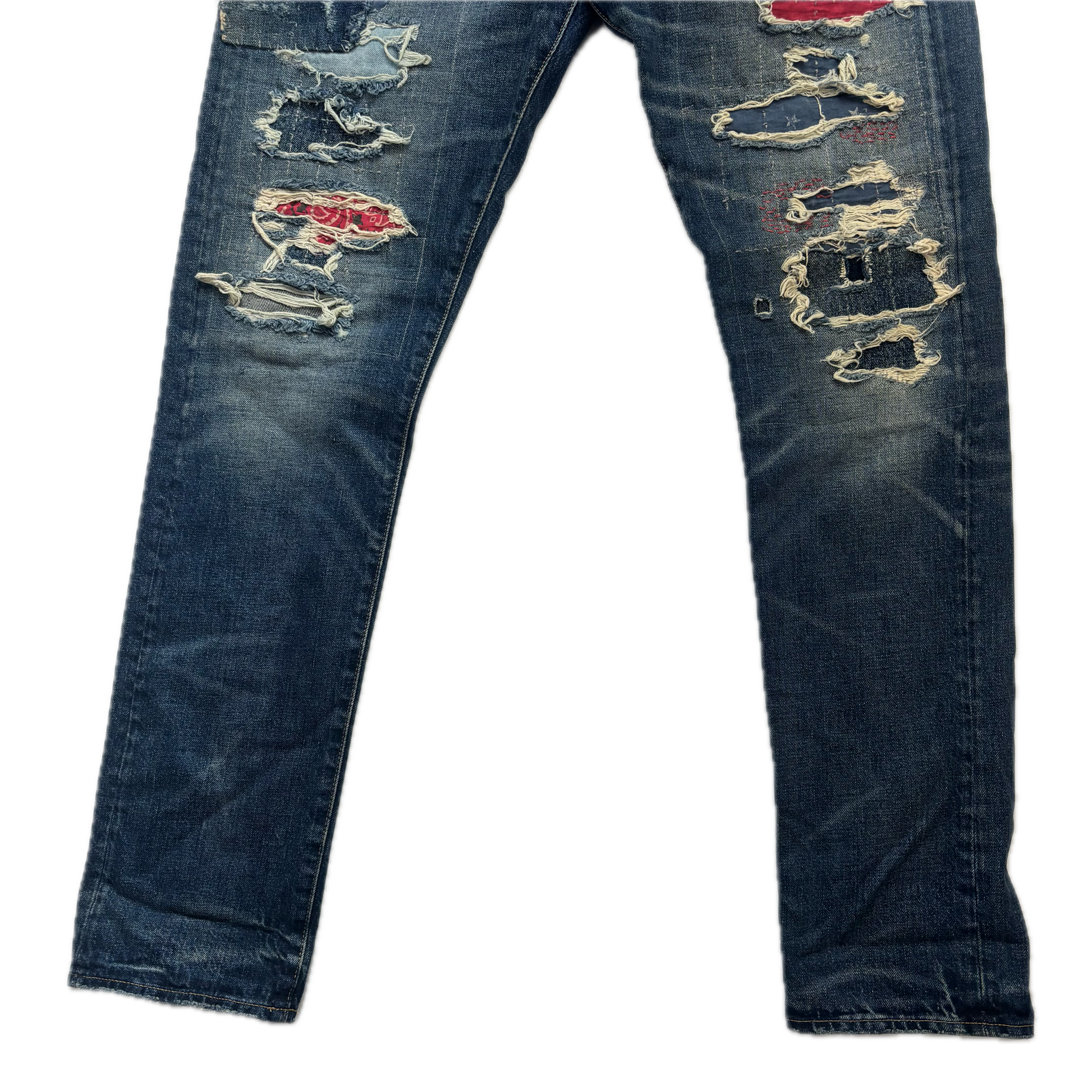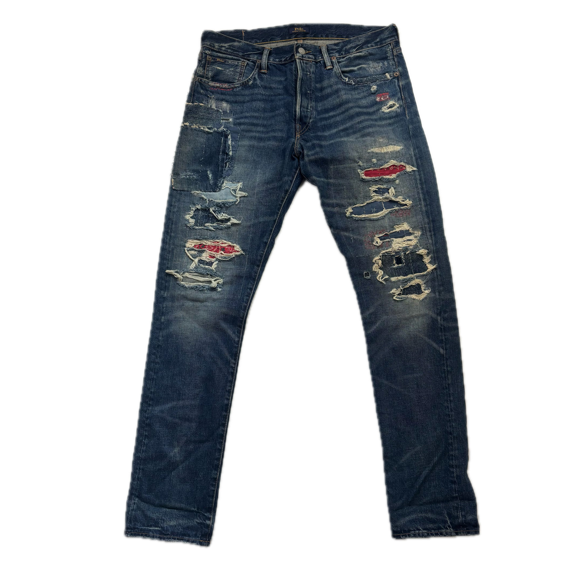 Polo Ralph Lauren Sullivan Slim Straight Jeans Patchwork Distressed - 34x34