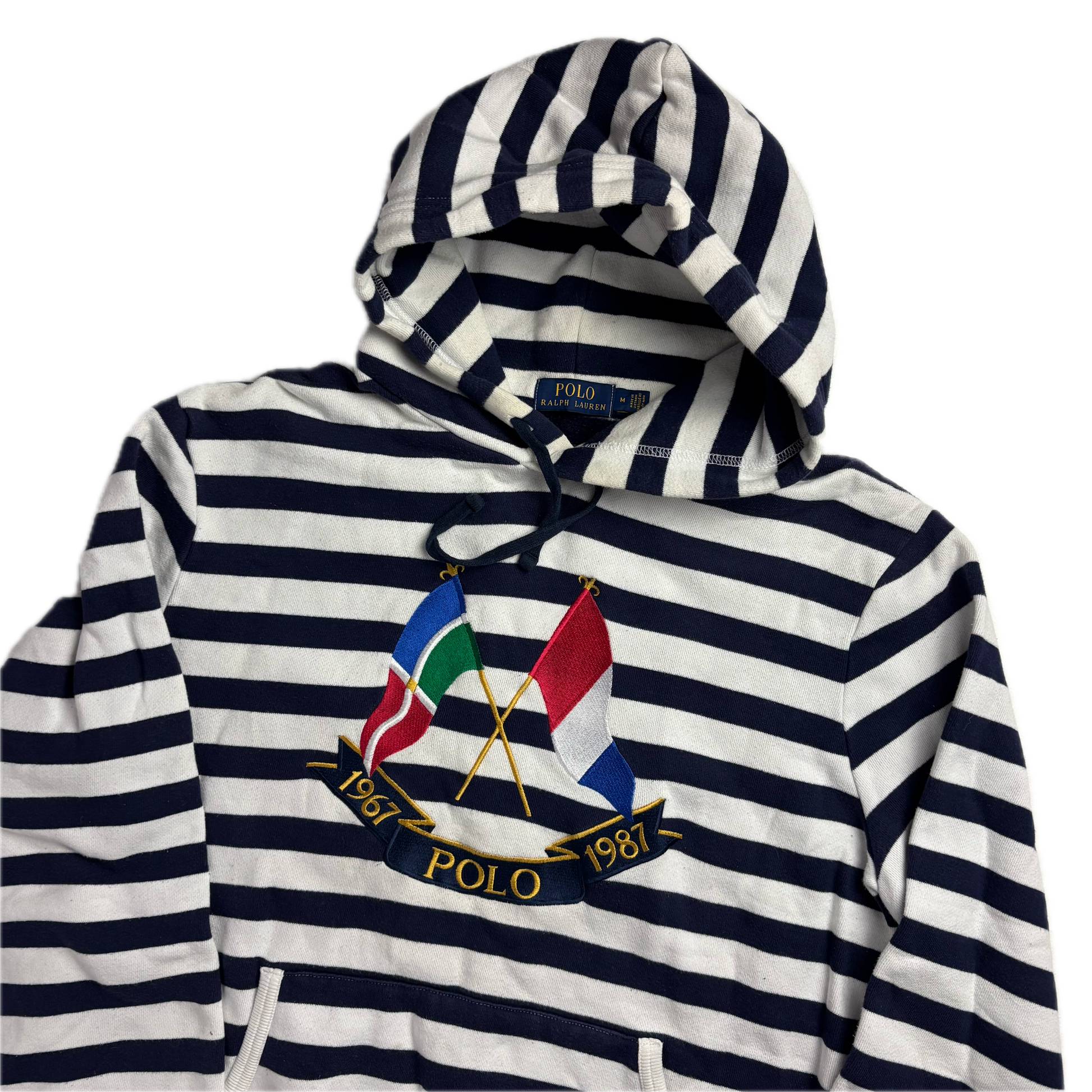 Polo Ralph Lauren White Navy Cross Flags Striped Hoodie Retro - M