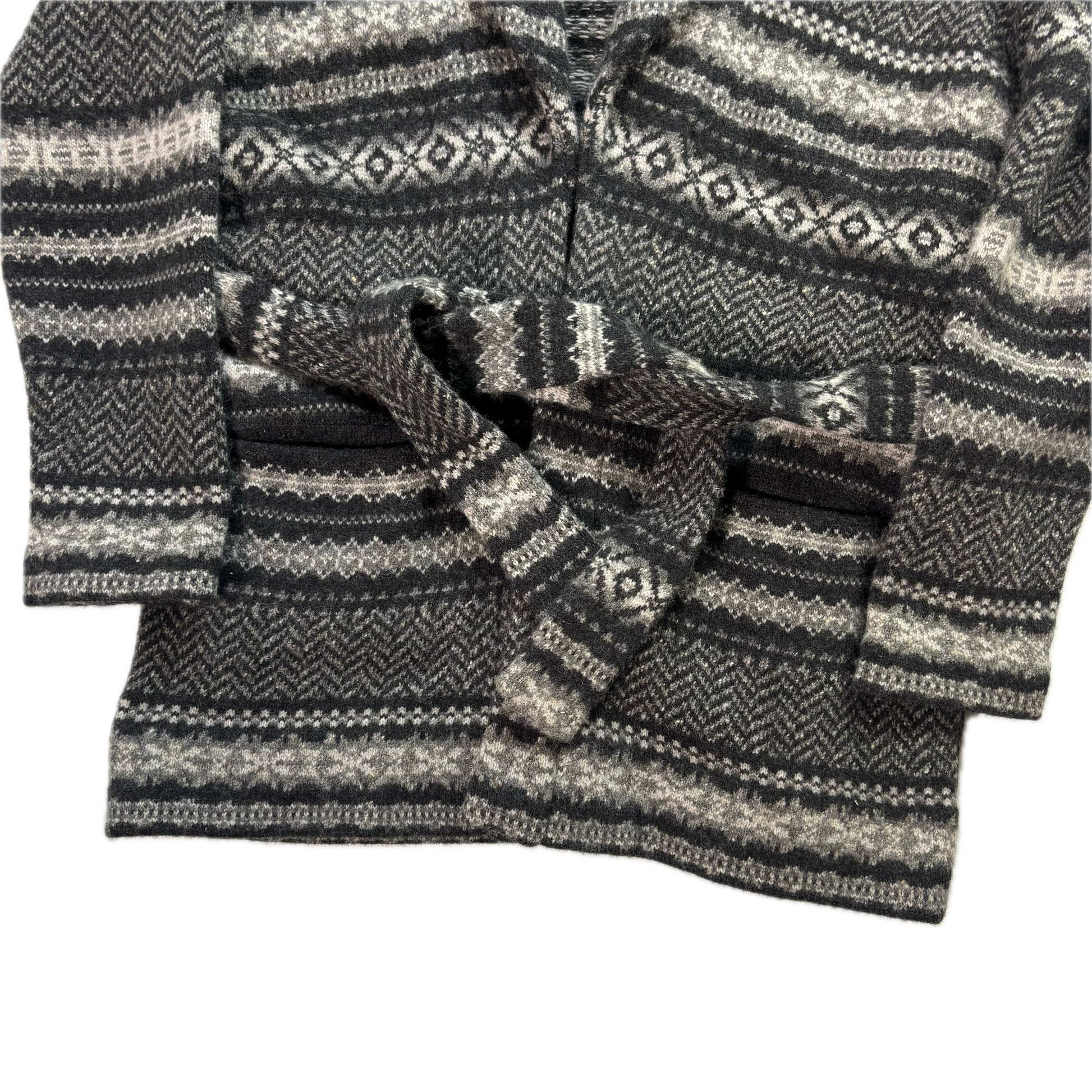 Purple Label Grey Belted Fairisle Cardigan (Cashmere Wool) - XL