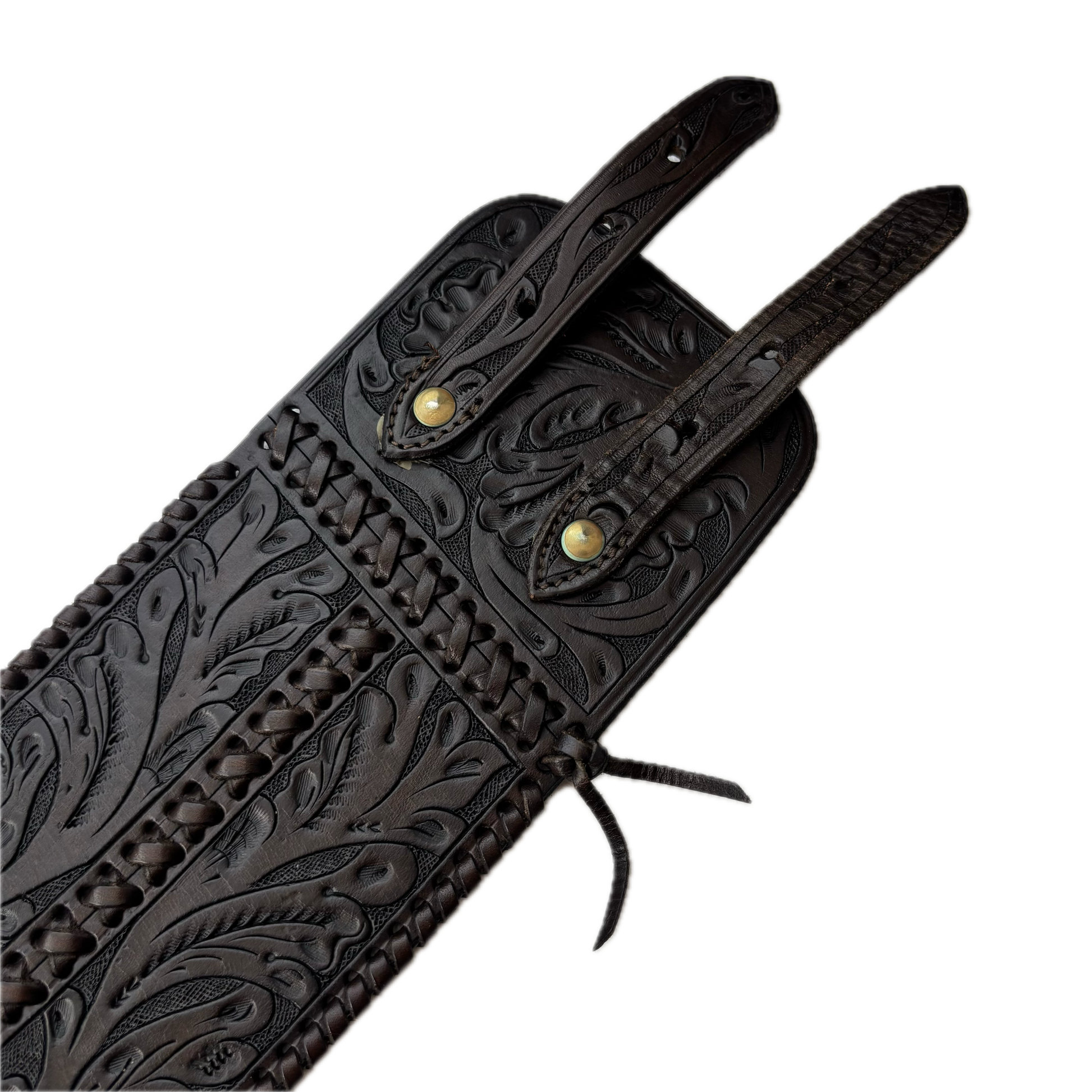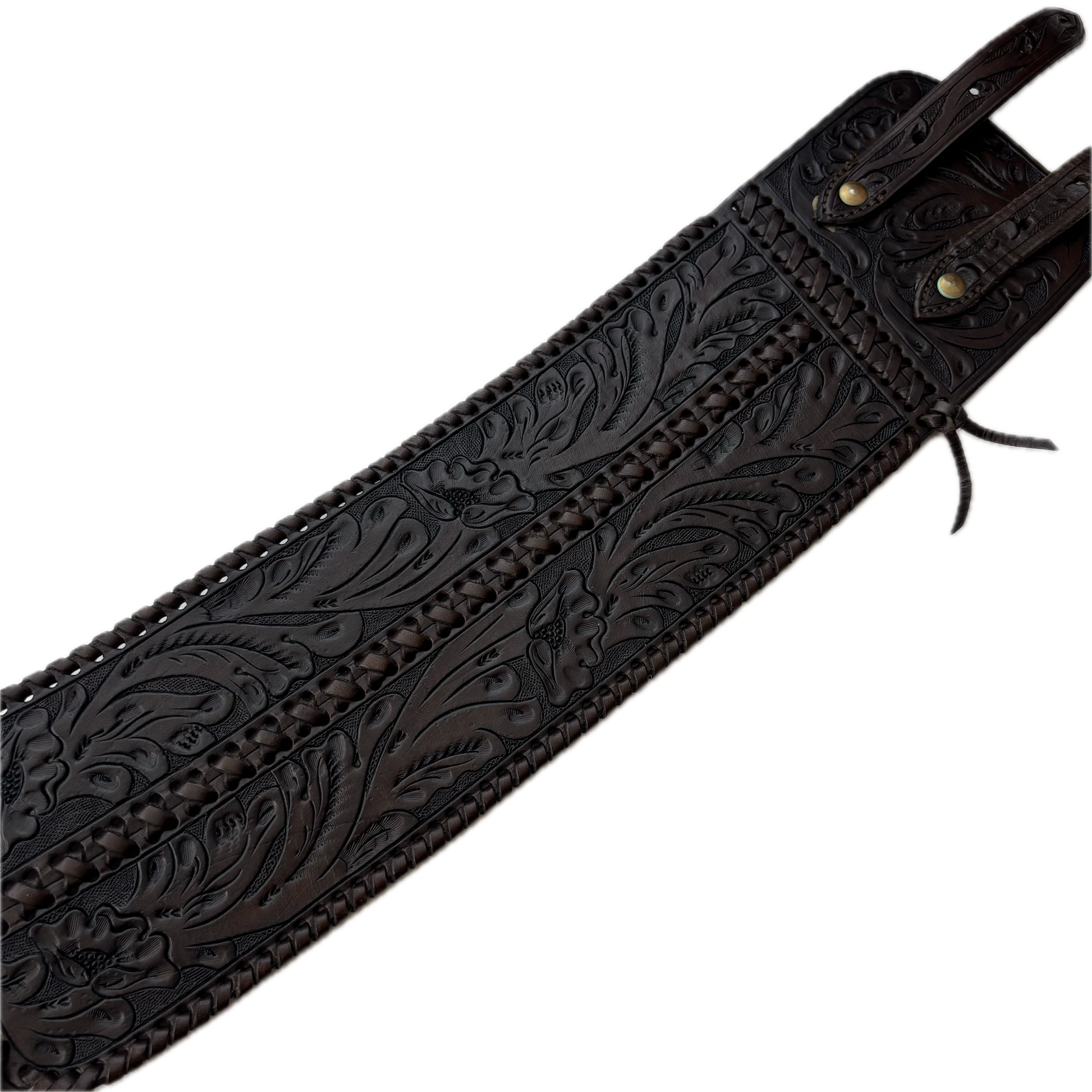 Ralph Lauren Dark Brown Leather Equestrian Corset Western Hand Tooled Belt - L