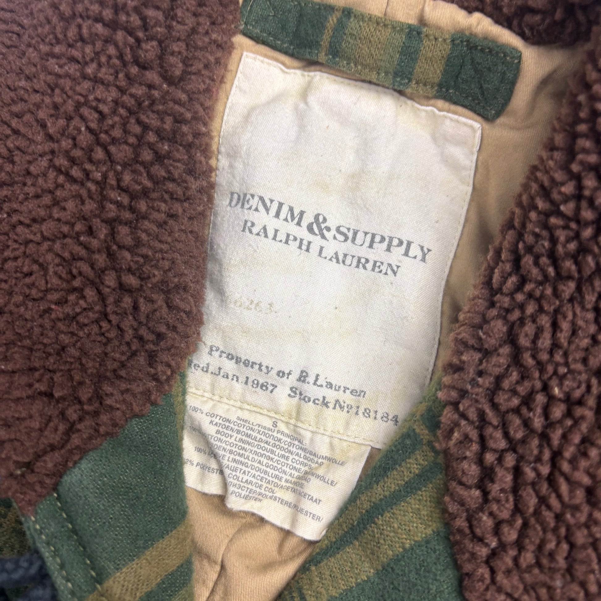 Ralph Lauren Denim Supply Green Jacquard Pattern Sherpa Collar Jacket - S
