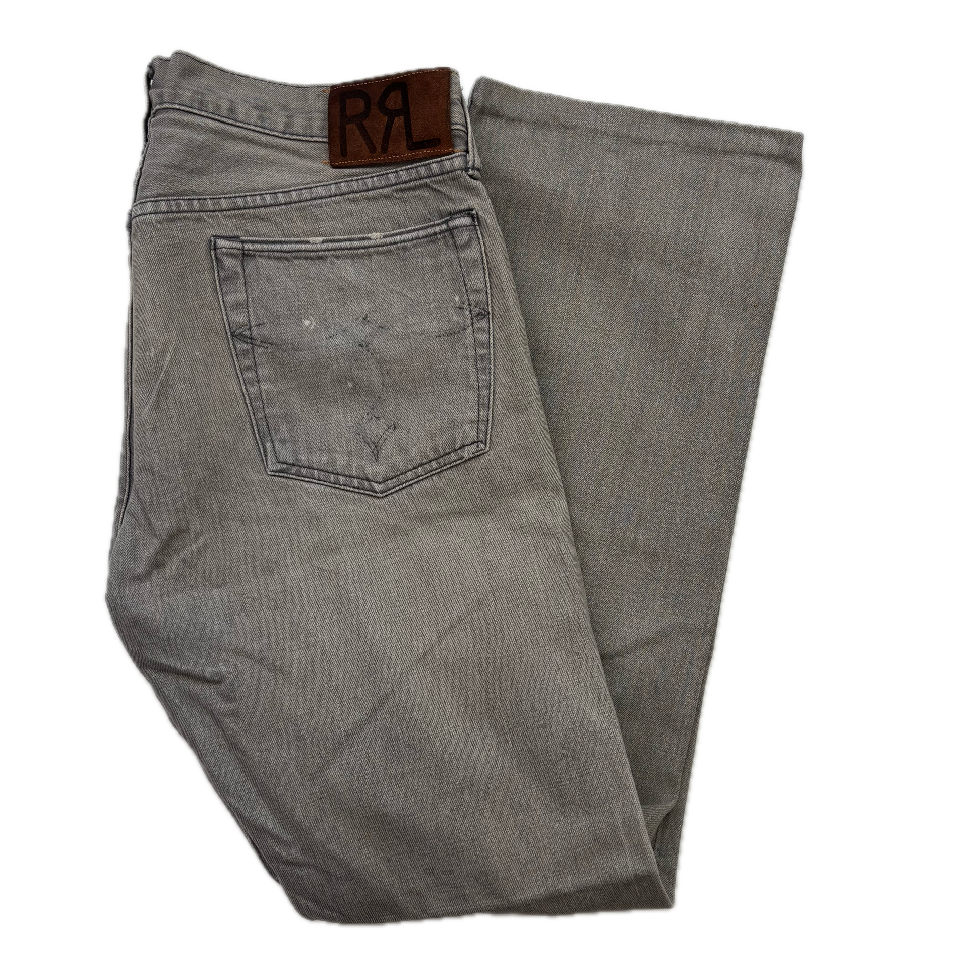 RRL Ralph Lauren Grey Jeans Slim Boot Cut Japanese Woven Selvage Denim - 34x31