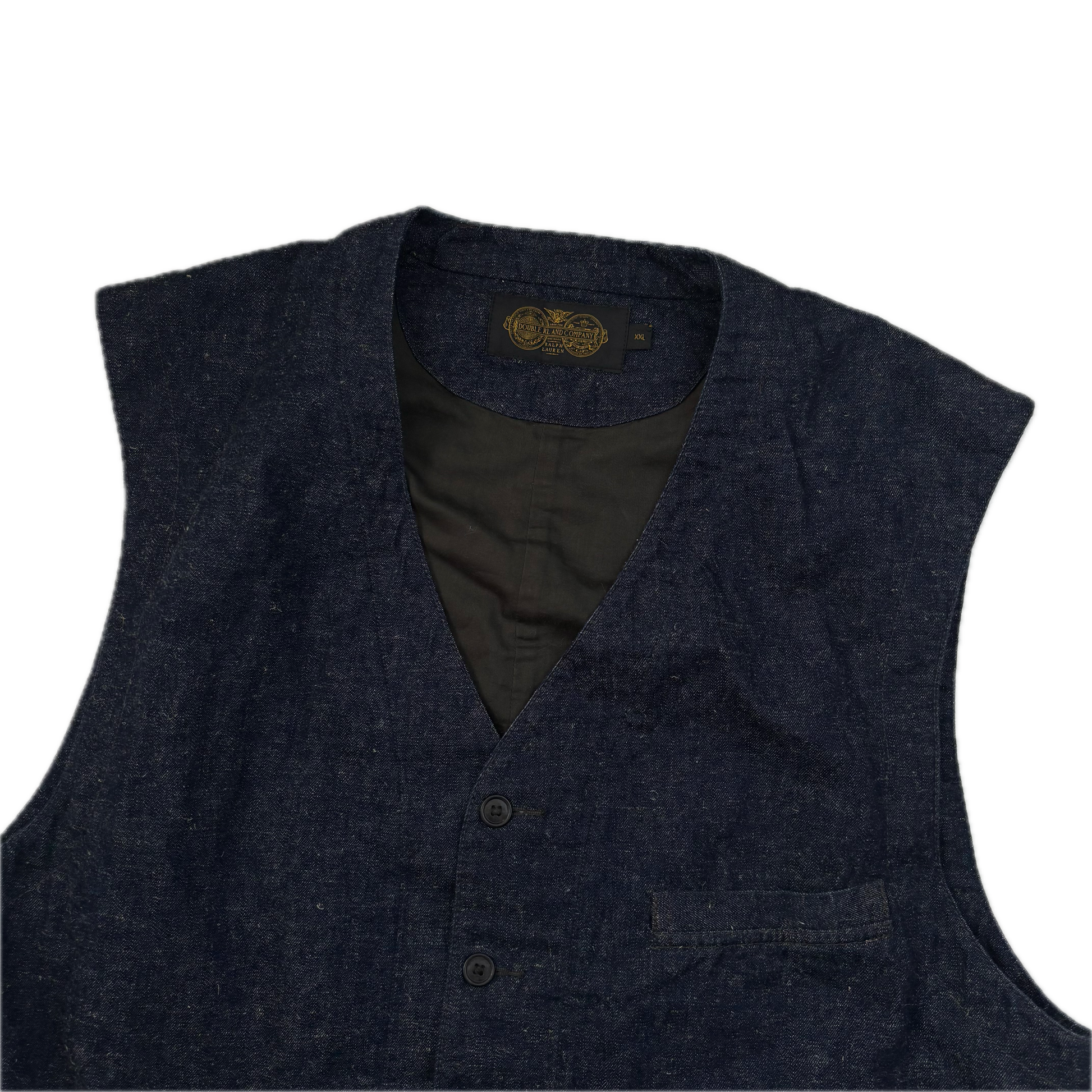 RRL Ralph Lauren Navy Blue Chambray Waistcoat - XXL